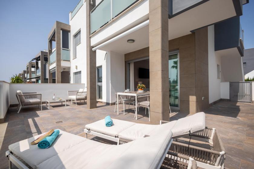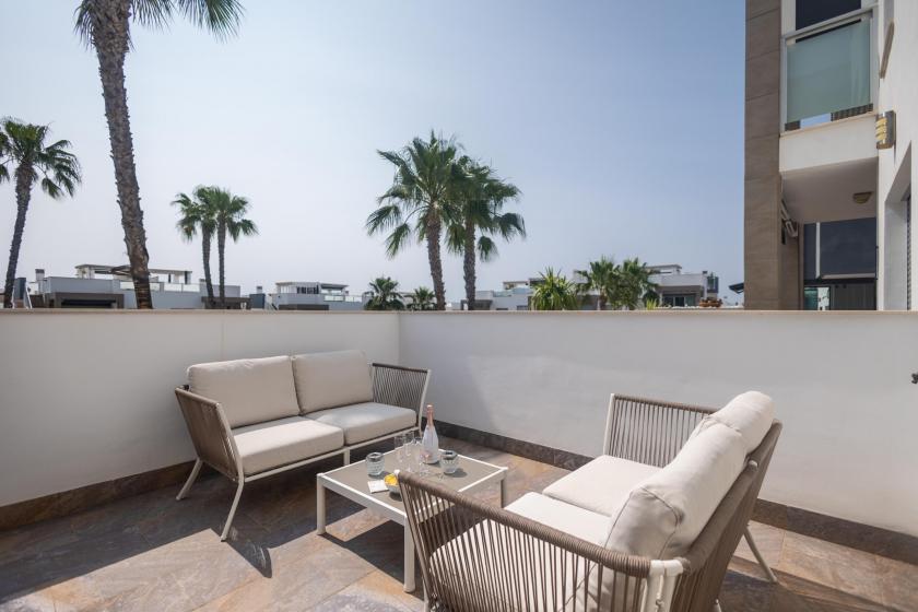 Punta Prima es un lugar excelente para quedarse, ubicado de manera central y ideal tanto para estancias cortas como largas en invierno. El complejo se encuentra a solo 13 minutos a pie de la playa y ofrece todas las comodidades necesarias, como tiendas, bares y restaurantes, al alcance de la mano.