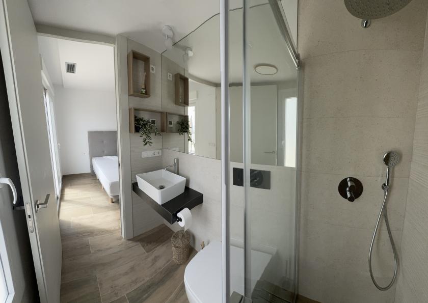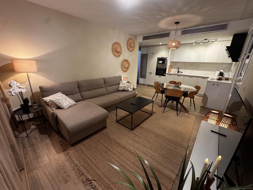 Le salon accueillant est équipé d'un canapé confortable, d'une table à manger et de chaises, d'une connexion Wi-Fi haut débit (300 Mo) et d'une SMART TV. La cuisine ouverte est entièrement équipée avec tous les appareils nécessaires, y compris un lave-vaisselle, ce qui la rend parfaite pour la détente et le divertissement.